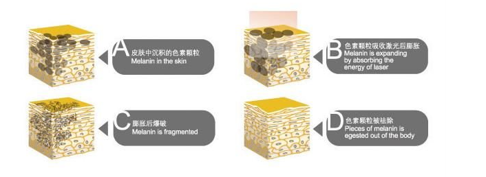 1. Q Switched ND: YAG laser with more powerful pulse energy, ensuring moreefficient pigments removal.